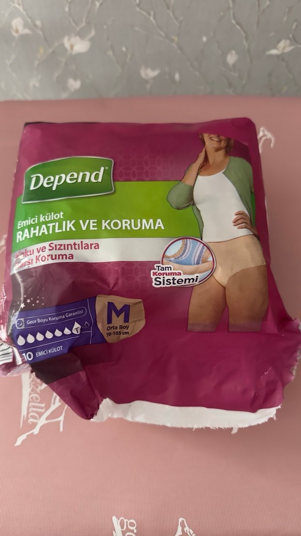 Depend emici külot, sıvı ve sızıntılara karşı tam koruma sistemi ile rahatlık ve koruma sağlar. Orta boy ve sıkı oturan yapıda. İçinde 5 adet vardır. M beden