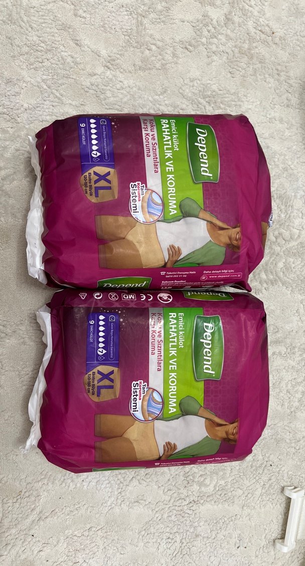 Depend XL beden alt bezleri, gelişmiş emici sistemi ile rahatlık ve koruma sağlar. Güvenli oturuş ve kuruluk için tasarlanmıştır. Paketlerden biri açılmış içinden 2 tane kullanılmıştır. Açık pakette 7 tane kapalı pakette 9 tane toplam 16 tane vardır.