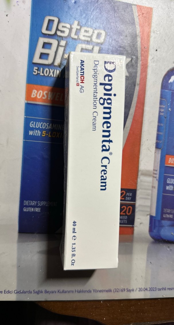 AKATICH Depigmenta Krem, ciltteki renk düzensizliklerini azaltmak için 40 ml'lik kutuda sunulan depigmentasyon kremidir. Ürünün ambalajı biraz bozuk ıslanmış ama içinde kutusu kapalı açılmamıştır