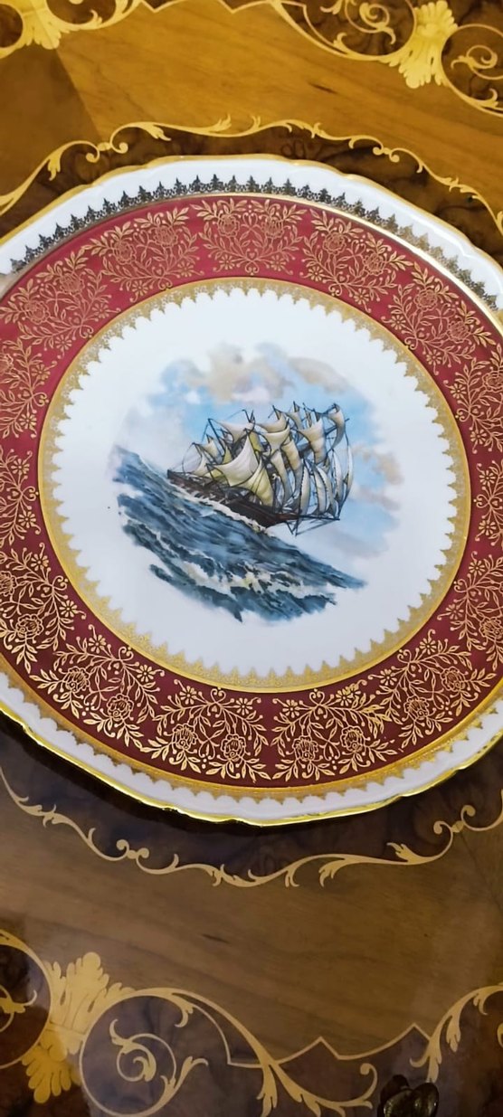 Altin yevmiyeleri kusursuz boyamasiyla gözlerinizi alamayacağınız çok şık bir servis tabağı büyük boydur ağır bir üründür .kusursuzdur deposee markasına aittir antika vintage