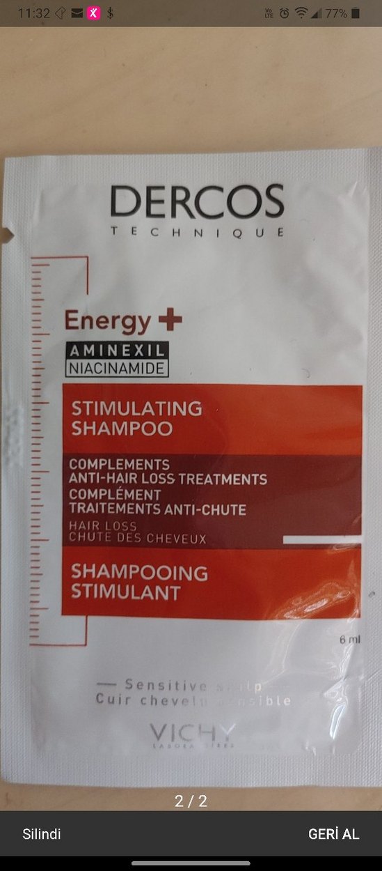 Dercos Energy+ şampuan, Aminexil ve Niacinamide içerir. Saç dökülmesine karşı destekleyici, hassas saç derisine uygun canlandırıcı formül. 10 tane 6 ml olarak yollanacaktır