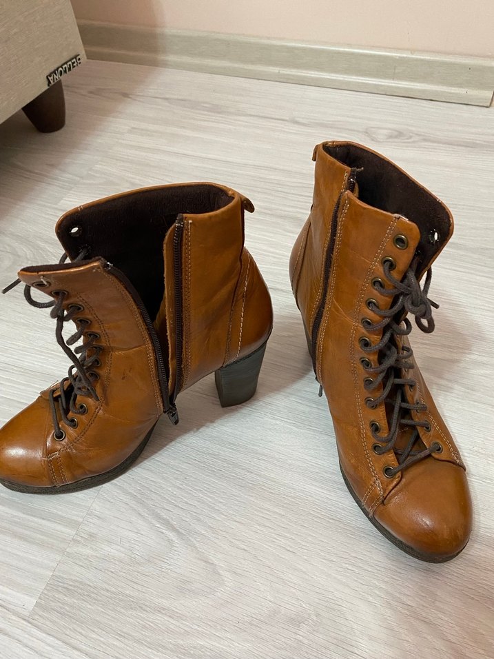 Deri Bağcıklı Vintage Kadın Botu