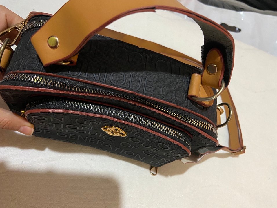 Kahverengi deri kadın çanta, baskılı detaylar ve fermuarlı bölmelerle sokak stilini günlük kullanımla buluşturuyor. Moda ve işlevselliği sevenler için ideal.