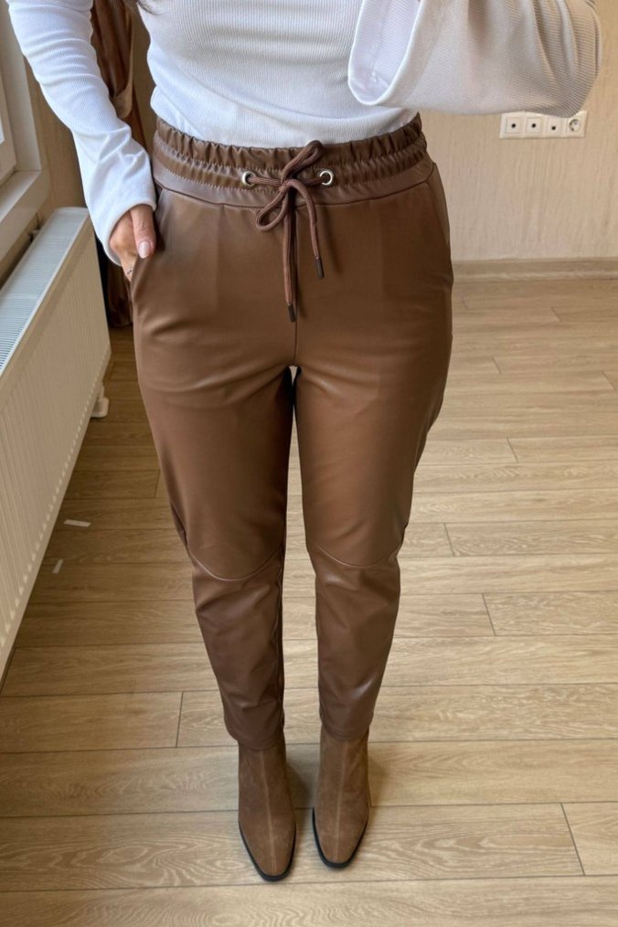 Deri pantolon, bol kesim ve bel bağlama detayına sahip. Midi boyda, desen içermeyen rahat ve şık hem günlük hem özel kullanım için uygun. S/M/L/XL beden aralığı 2 renk seçeneği