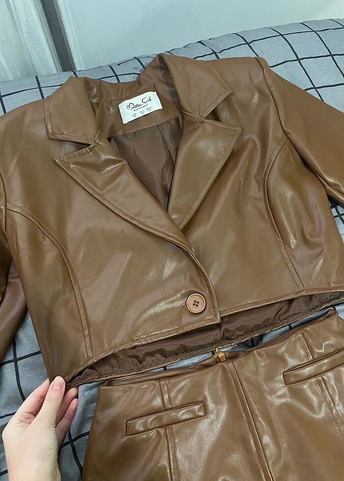 deri blazer ceket etek takim