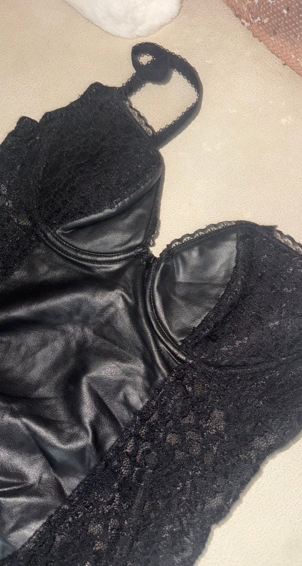 Dantelli, siyah, straplez ve kolsuz gotik tarzda, vücuda oturan midi uzunlukta bir büstiyerdir. Sentetik kumaştan yapılmıştır.