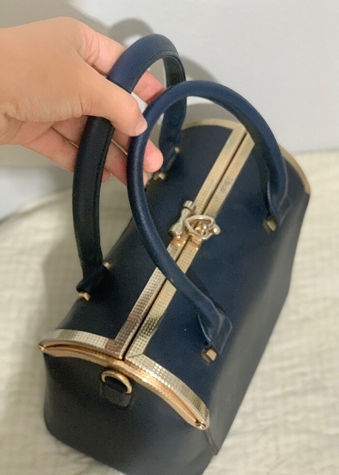 lacivert renk el çantası omuz askısı bulunmamaktadır gold detaylı ve iç hacmi 5 bölmelidir fermuarları sağlam 1. kalite el çantası
