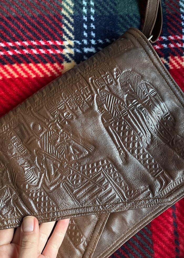 Kahire’den alındı hiç kullanılmadı gerçek deri. Üzerinde etnik mısır desenleri var