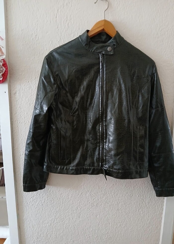 Resimde siyah gibi duruyor ama koyu yeşil renkte Gerçek deri cekettir