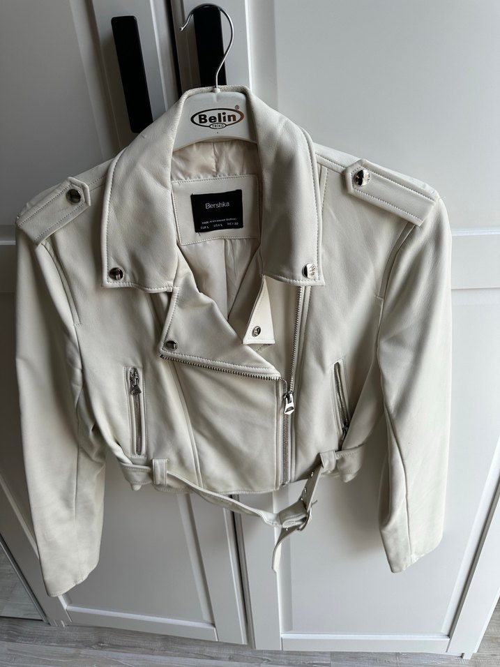 L beden, kısa deri ceket biraz giyildi