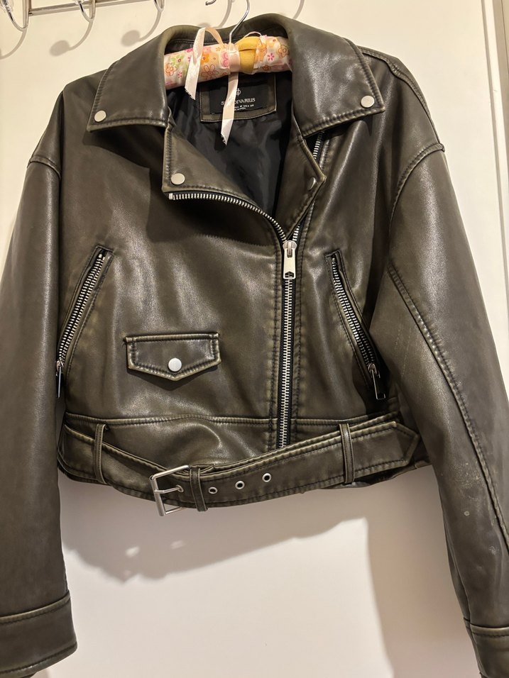 Haki renkli deri ceket, deformesi bulunmuyor, m beden fakat s beden olanlara da rahatlıkla olur, ihtiyaç fazlası olduğu için satıyorum alıcısına hayırlı olsun