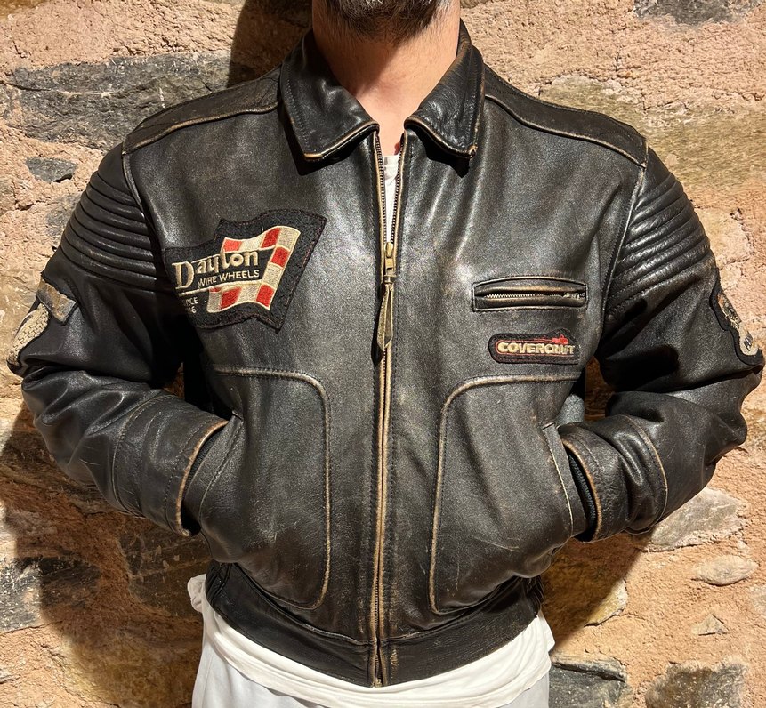 Vintage Skyjacker Biker / Pilot Deri Ceket Americana ruhunu yansıtan, patinalı (tea-core) gerçek vintage parça. Dayton Wire Wheels, Pennzoil, Covercraft gibi ikonik otomotiv & yarış yamalarıyla güçlü bir karaktere sahip. Akordiyon omuz yapısı ve ağır sığır derisiyle tam bir koleksiyonluk biker ceket. Ölçüler: • Ense–etek: 64 cm • Koltuk altı–koltuk altı: 61 cm #vintageleatherjacket #skyjacker #bikerjacket #pilotjacket #americana vintagebiker dericeket patina teacore vintagestyle thevintagegarage