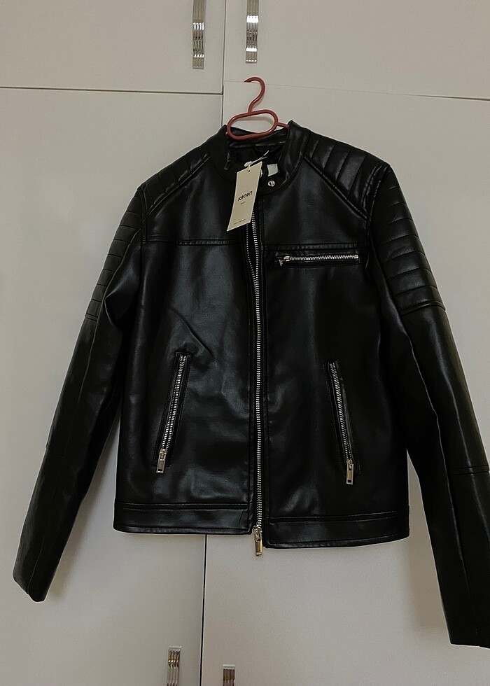 Deri ceket etiketli