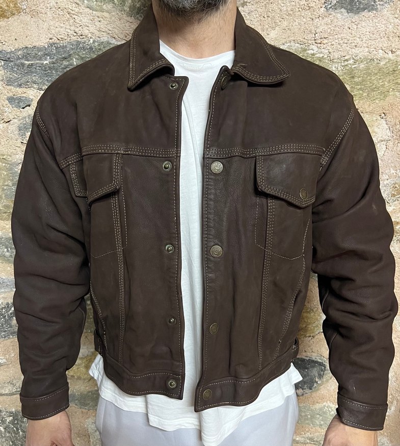 Kahverengi Hakiki Deri Trucker Ceket Kalın ve tok yapılı hakiki deri kullanılarak üretilmiş, klasik trucker formunda güçlü bir parça. Kontrast dikiş detayları, metal düğmeleri ve maskülen duruşuyla hem günlük kullanım hem de koleksiyonluk olarak tercih edilebilecek bir model. Omuz ve göğüs yapısı belirgin, fit ve karizmatik bir siluet sunar. Ölçüler: • Ense bitiminden etek: 67 cm • Koltuk altından koltuk altına: 59 cm Kondisyonu çok iyi, deri yapısı diri ve formunu koruyor. Diğer ilanlarımıza da bakabilirsiniz. Kargolama aynı gün özenle yapılır. #hakikideri #dericeket #vintagederi #vintageceket #truckerceket #leatherjacket #vintageleather #menswear #erkekstil #erkekmoda #maskulenstil #zamansizstil #koleksiyonluk #vintagegarage #thevintagegarage