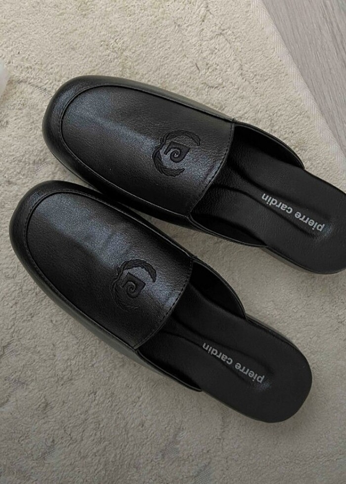 41 numara siyah deri damat terligi.Pierre cardin marka ve armalı sifir urun.