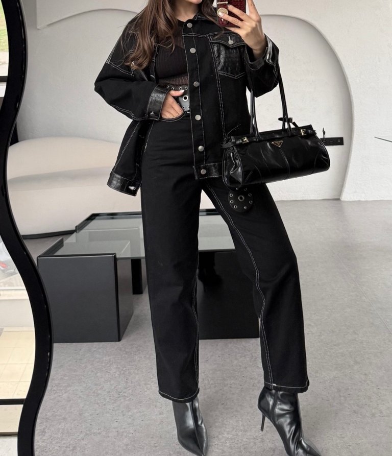 Deri detay Jean takım