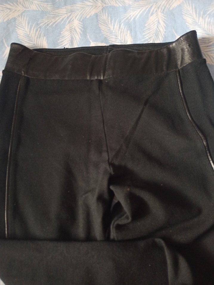 Deri detay, siyah dar kesim midi uzunlukta kadın pantolon- tayt s- m