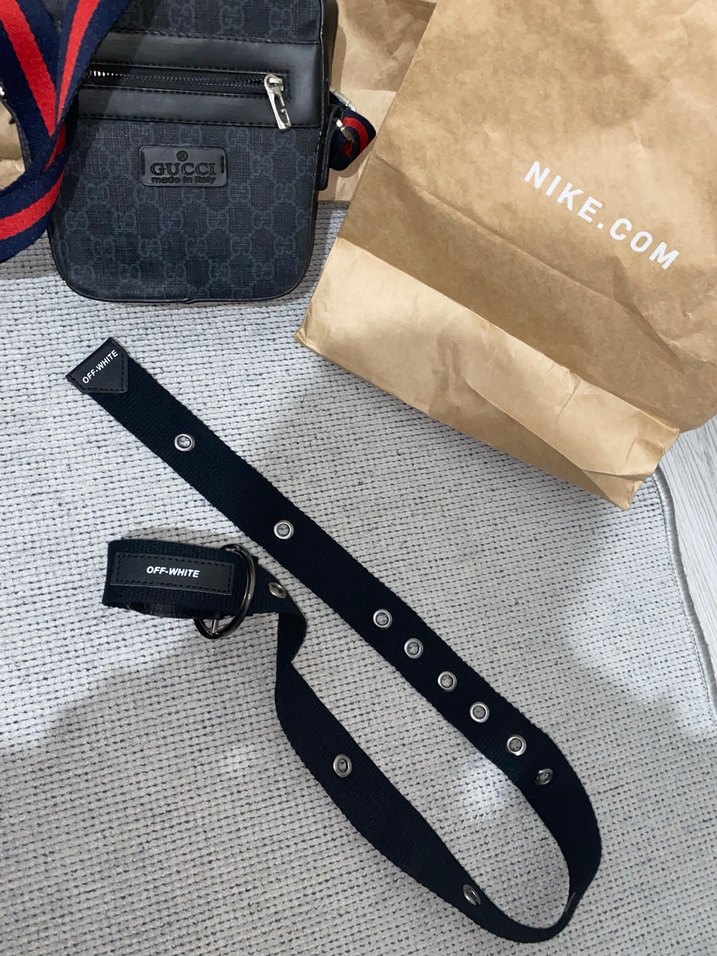 Metal halkalı siyah deri kemer, minimalist sokak stili ve rock punk havası sunar. Off-White markalıdır. UNİSEX