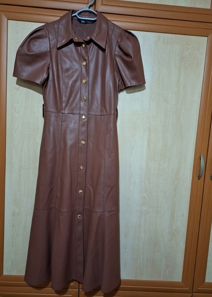 Kahverengi zara deri elbise