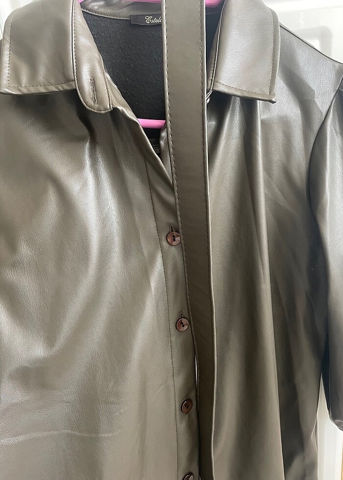 İçi yumuşacık dışı parlak güzel bir deridir Ürünü ister elbise ister tunik olarak kullanabilirsiniz kemeri vardır elbisenin modeli Çan şeklindedir aşırı şık ve modern tertemiz çok az kullanıldı hiçbir sorunu yoktur kaçırmayın