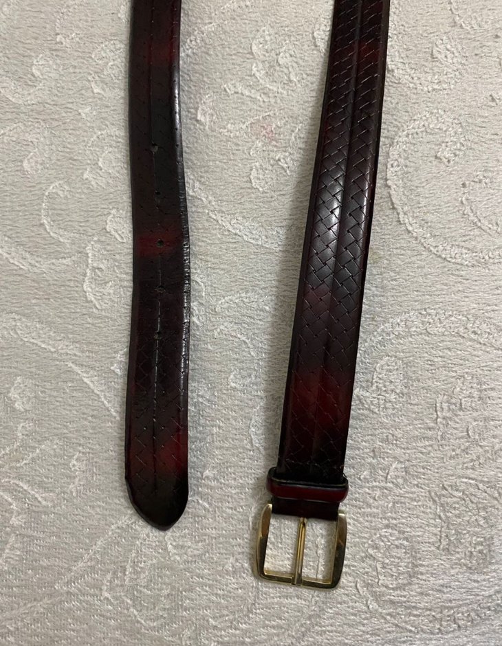 Koyu bordo renkte, dokulu deri kemer, klasik tokalı tasarıma sahiptir. Zamansız tarzlar için uygundur.