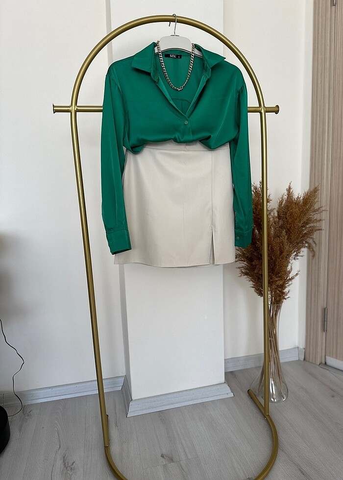 Krem mini yırtmaçlı deri etek S-M-L seçenekleriyle