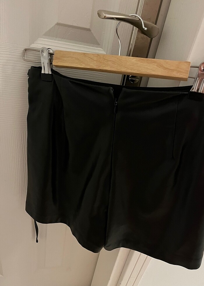 Deri yandan bağcık detaylı şort etek