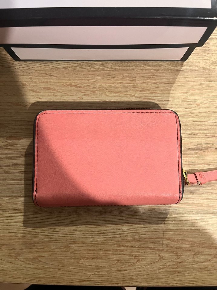 Pastel pembe renkte, deri malzemeden fermuarlı kadın cüzdanı. Minimalist ve desensiz tasarımı, günlük kullanıma uygundur. Mango markadır. Hiçbir sorunu yoktur.