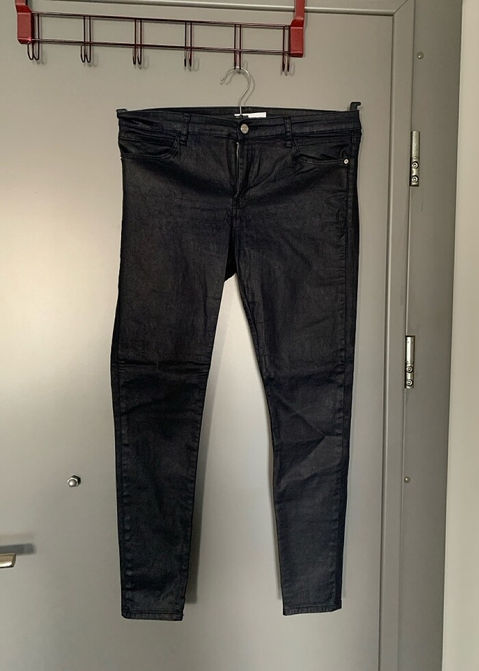 Esnek deri görünümlü pantolon