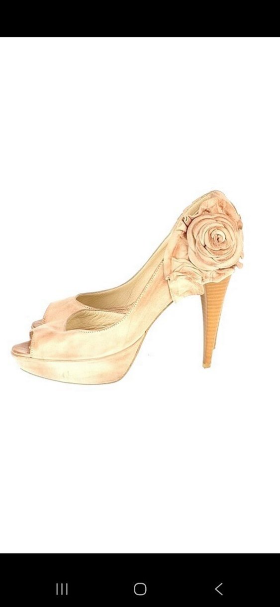 topuklu ayakkabı çiçekli fırfır detaylıdır. Düğün ve çağdaş stil için uygundur. Pastel tonlarıyla Paris şıklığı sunar.
