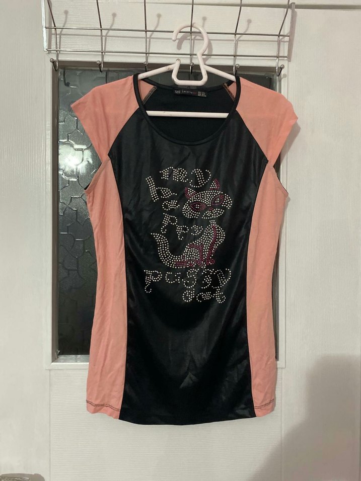 Kolsuz, dar kesim ve yuvarlak yakalı kadın tişörtü, sentetik kumaş üzerinde pul detaylı, koyu pembe renkte. Günlük sokak stiline uygun. sorunsuz