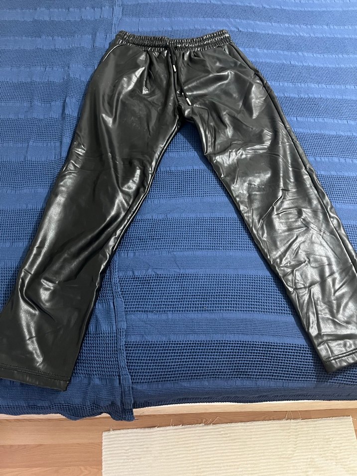 Deri Görünümlü Siyah Kadın Pantolon