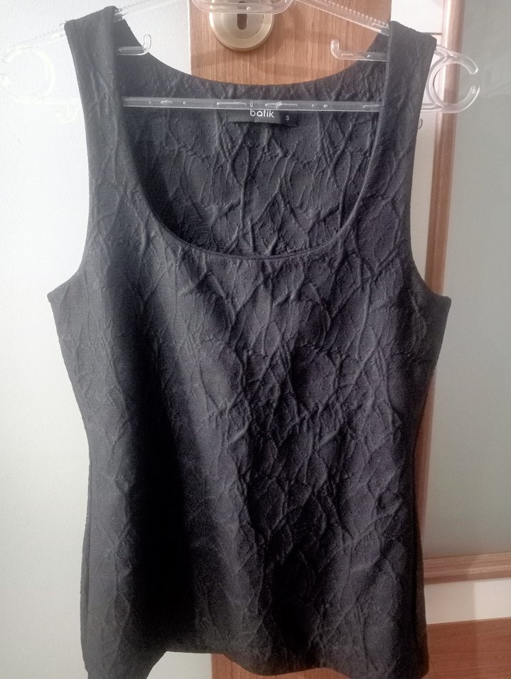 V yakalı, kolsuz,deri kumaş gorunumlu ve dar kesim siyah kadın bluz. Midi boyda, gotik tarzda, günlük kullanım için uygundur.