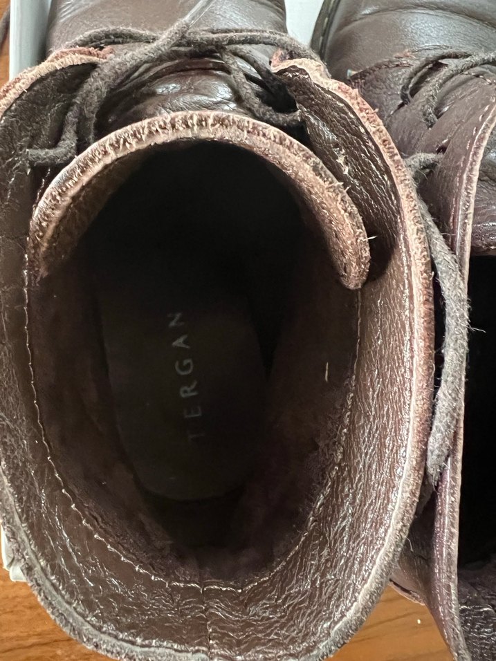Tergan marka Kahverengi gerçek deri kadın bot, tokalı ve dolgu topuklu, rahat ve günlük kullanım için uygun. Rahat bir bottur. Çok az giyildi. Sorunsuzdur.