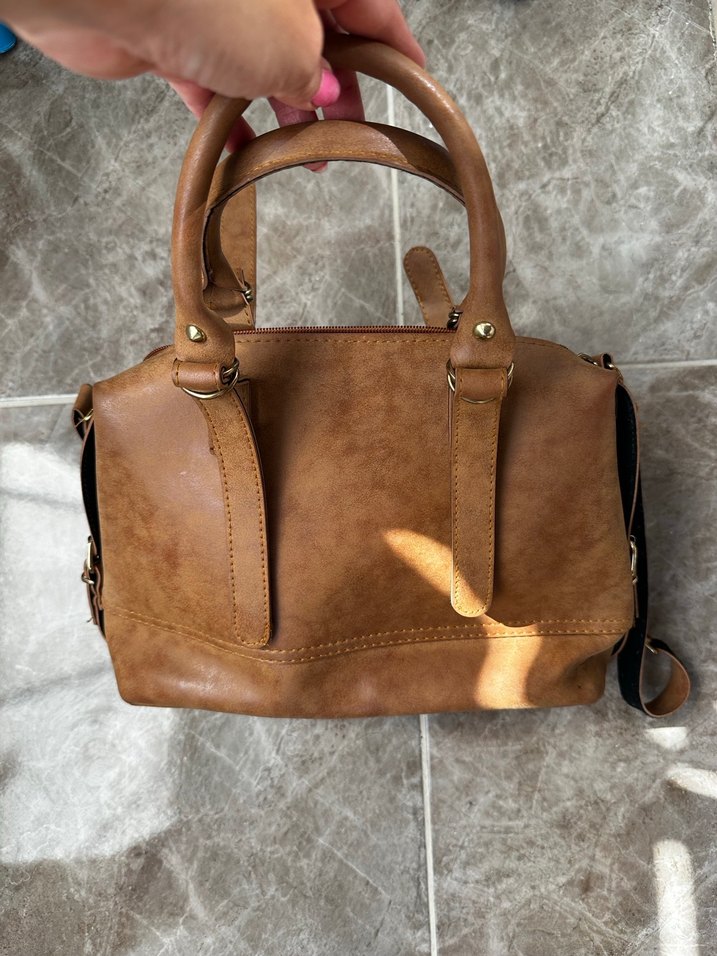 Süet görünümlü camel renk deri çanta, sezon modeli