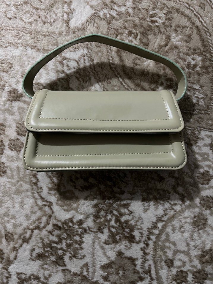 Mint yeşili tonlarında, tokalı kapaklı deri kadın çantası.Günlük kullanıma uygundur