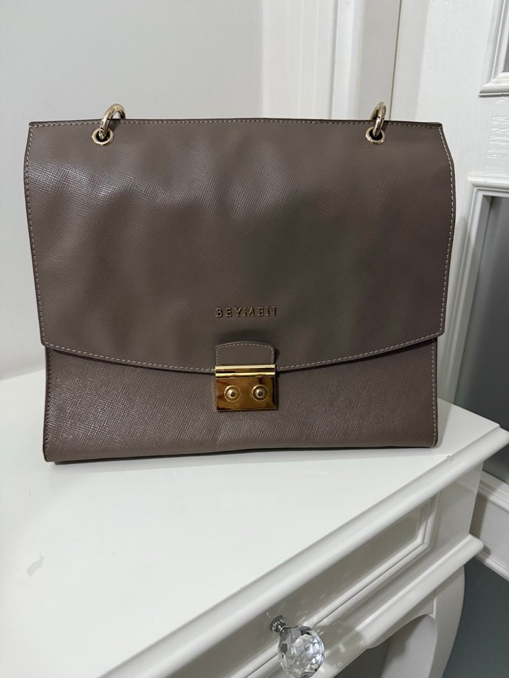 Vizon rengi deri kadın çanta, tokalı kapama ve desensiz tasarıma sahiptir. Modern klasik stil ve Paris şıklığını yansıtarak günlük kullanıma uygundur.