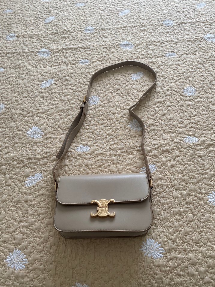 deri çapraz çanta, altın renkli tokalı kapama ile günlük kullanım için klasik şıklık sunar.