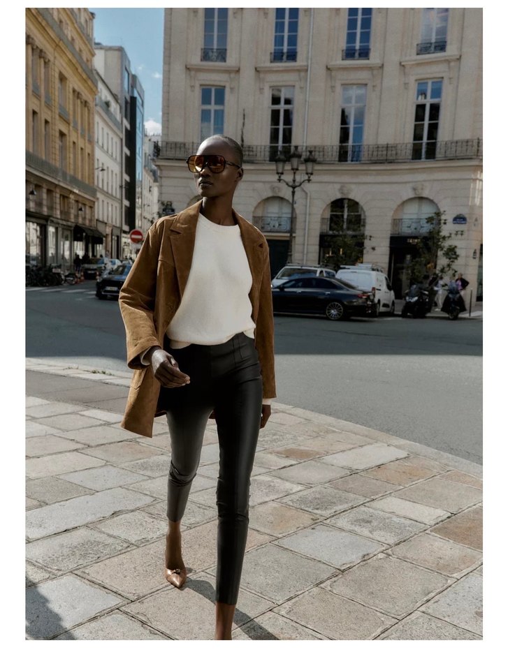 Parlak görünümlü, camel renk deri kadın skinny pantolon. Normal boy ve regular fit ile rahat bir kullanıma sahip, şehir stiline uyumlu şık parça.