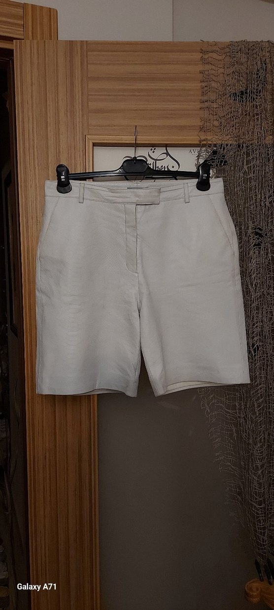 Sayılı giyildi.38/40 bedenlere uygun.Cepli,astarlı.Sağ önde çok hafif bir leke oluşmuş,çıkadabilir. Yılan derisi dokulu.Çok tarz bir şort.