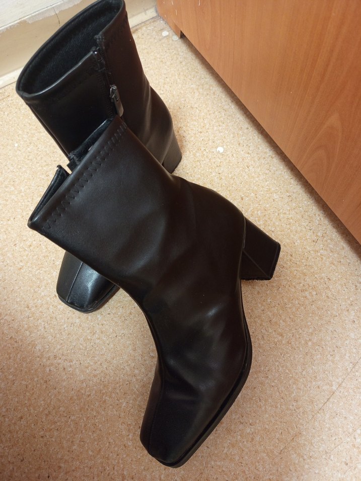 Sadece bir kaç kez kullandım yepyeni ürün. 40 numara ama benim ayak numaram 38-39 yine de oluyor. Siyah deri, kadın botları, blok topuklu ve minimalist goth tarzında, düz yüzeye sahip, günlük kullanım için uygun.