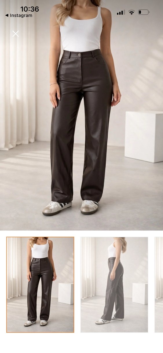 Parlak kahverengi deri, kemerli, vücuda oturan midi pantolon, günlük sokak stili için uygundur.