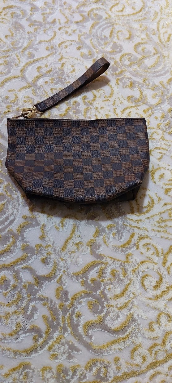 Kahverengi deri, kareli desenli, fermuarlı kadın portföy çanta, günlük kullanıma uygun klasik Paris tarzı.