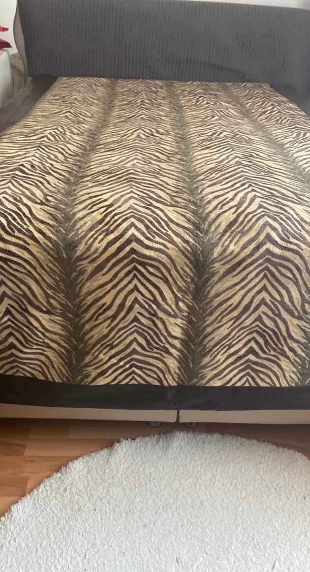 Parlak kahverengi deri lopar desenli, kenarları düz ve şık olan yatak örtüsü araları deri leopar deseni, odanıza tarz katıyor. ️3yastıgı var ❤️