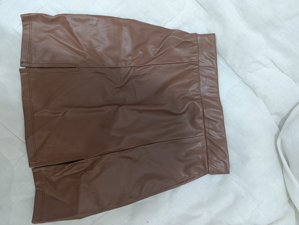 Deri kahverengi mini uzunlukta ve dar kesim kadın etek. Minimalist ve sade tarzıyla outdoor kullanıma uygundur.