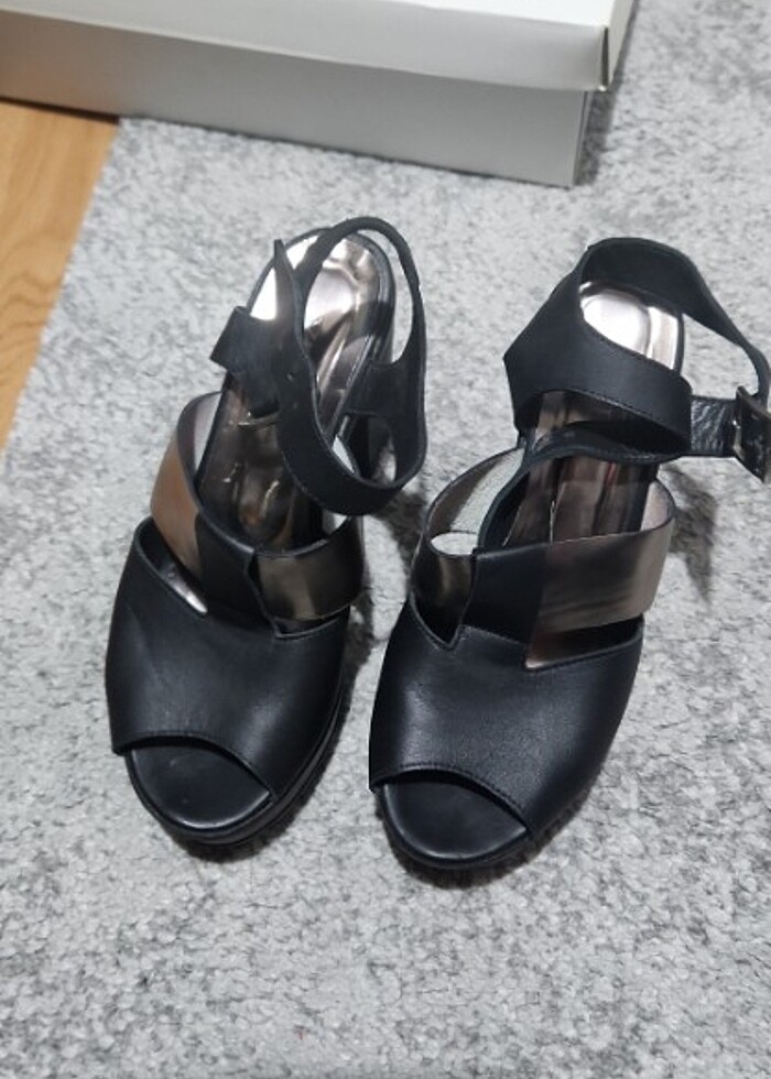 Yees marka Deri kalın topuklu yazlık ayakkabı. 1 defa düğünde giyildi ancak günlük lullanıma uygun.