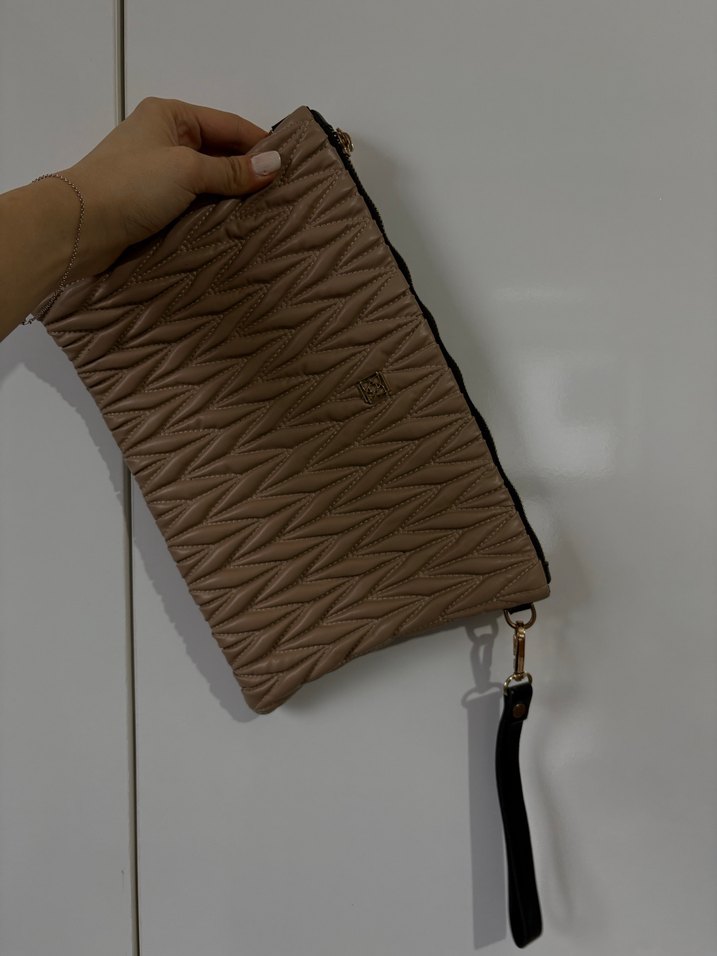 Kahverengi deri kapitone kadın çantası, fermuarlı kapanışa ve çıkarılabilir siyah kayışa sahiptir. Minimalist tasarım, günlük sokak stiline uygundur. Ufak deformeleri vardır.Her ortama uyumlu.