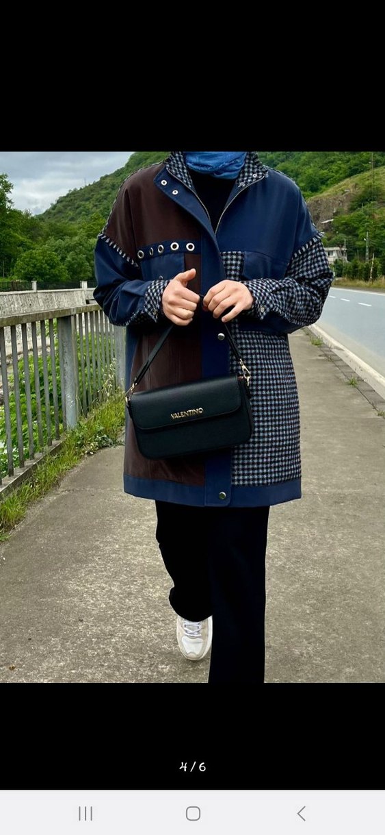 Deri dokulu, kemerli ve ekose desenli midi uzunlukta kadın kaban. Notch yaka ve uzun kollu, günlük sokak stiline uygun rahat kesim.
