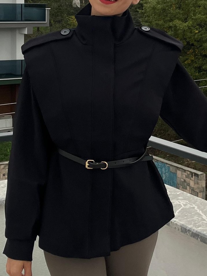 Deri Kemerli Siyah Ceket