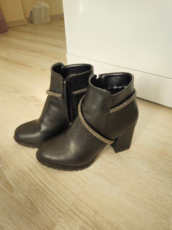 siyah deri topuklu bot toka detaylı kayışlarla süslenmiş, rahat ve şık sapasağlam hiç bir sorunu yoktur sadece 2 defa giyildi tertemiz duruyor